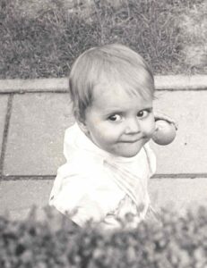 Als ik jaren geleden deze woorden zou lezen, dan vond mijn brein daar wat van…stom, overdreven etc… Noem het weerstand. Nu, zoveel jaren later verschijnt er een glimlach rond mijn mond. Ik nodig steeds opnieuw mijn innerlijk kind uit. Daarmee bedoel ik: mijn spontane, speelse kind, die met open blik de wereld inkijkt en zichzelf niet zo serieus neemt. Op de foto hieronder zie je het kind wat elke dag met enthousiasme, verwondering, energie en zin in het leven de wereld in keek.